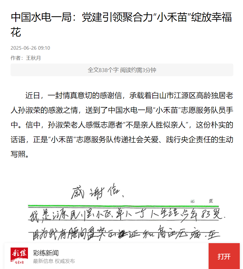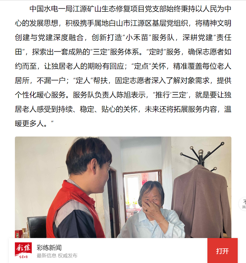 近日,一封情真意切的感謝信,承載著白山市江源區(qū)高齡獨居老人孫淑榮的感激之情,送到了中國水電一局“小禾苗”志愿服務(wù)隊員手中。信中,孫淑榮老人感慨志愿者“不是親人勝似親人”,這份樸實的話語,正是“小禾苗”志愿服務(wù)隊傳遞社會關(guān)愛、踐行央企責任的生動寫照。 中國水電一局江源礦山生態(tài)修復項目黨支部始終秉持以人民為中心的發(fā)展思想,積極攜手屬地白山市江源區(qū)基層黨組織,將精神文明創(chuàng)建與黨建深度融合,創(chuàng)新打造“小禾苗”服務(wù)隊,深耕黨建“責任田”,探索出一套成熟的“三定”服務(wù)體系。“定時”服務(wù),確保志愿者如約而至,讓獨居老人的期盼有回應(yīng);“定點”關(guān)懷,精準覆蓋每位老人居所,不漏一戶;“定人”幫扶,固定志愿者深入了解對象需求,提供個性化暖心服務(wù)。服務(wù)隊負責人陳旭表示,“推行‘三定’,就是要讓獨居老人感受到持續(xù)、穩(wěn)定、貼心的關(guān)懷,未來還將拓展服務(wù)內(nèi)容,溫暖更多人?!?/p> 在“三定”模式的堅實根基上,“小禾苗”志愿服務(wù)隊的“志愿紅”四季閃耀,溫暖著江源大地。母親節(jié)時,協(xié)助社區(qū)開展“巧手頌春暉”活動,百位母親與子女共制香囊,傳承孝親敬老好家風;暴雨突襲,青年突擊隊聞“汛”而動,冒雨疏通河道、搶通道路,危難時刻盡顯擔當;重陽節(jié)里,志愿者們制作吉祥花饃,開展“圓夢微心愿”活動,為老人和困難家庭送去溫暖;冬至前夕,為獨居老人打掃衛(wèi)生、安全檢查、閑話家常,驅(qū)散冬日的孤寂。 “小禾苗”的精神文明實踐不僅溫暖了社區(qū),更促進了企地深度融合。項目黨支部組織員工與社區(qū)居民開展籃球聯(lián)誼,拉近彼此距離;幫扶村修繕房屋時,項目施工隊伍迅速響應(yīng)。同時,推進煤矸石山治理、礦坑修復等工作,切實改善當?shù)丨h(huán)境,讓百姓共享文明成果。 從孫淑榮老人的感謝信,到抗洪一線的錦旗,從母親節(jié)的芬芳香囊,到重陽節(jié)的溫情花饃,中國水電一局作為全國文明單位,以黨建為引領(lǐng),將社會責任融入社區(qū)治理的點滴之中。那些緊握的雙手、幸福的笑容,生動詮釋了新時代尊老愛幼、鄰里互助、責任擔當?shù)奈拿黠L尚,為吉林大地注入了直抵人心的溫暖力量。 這 |