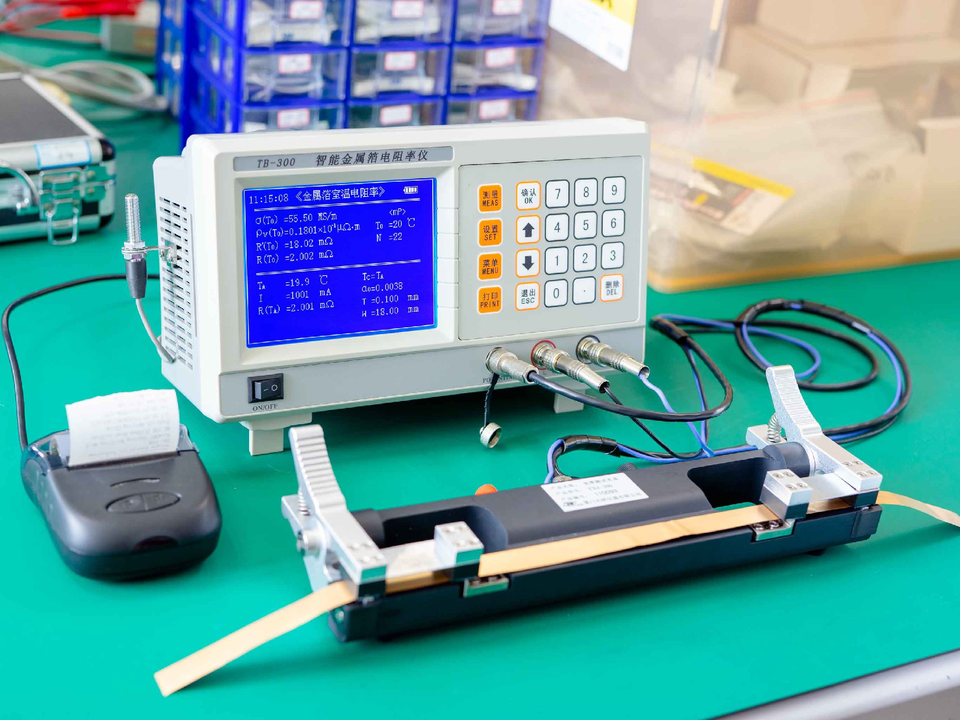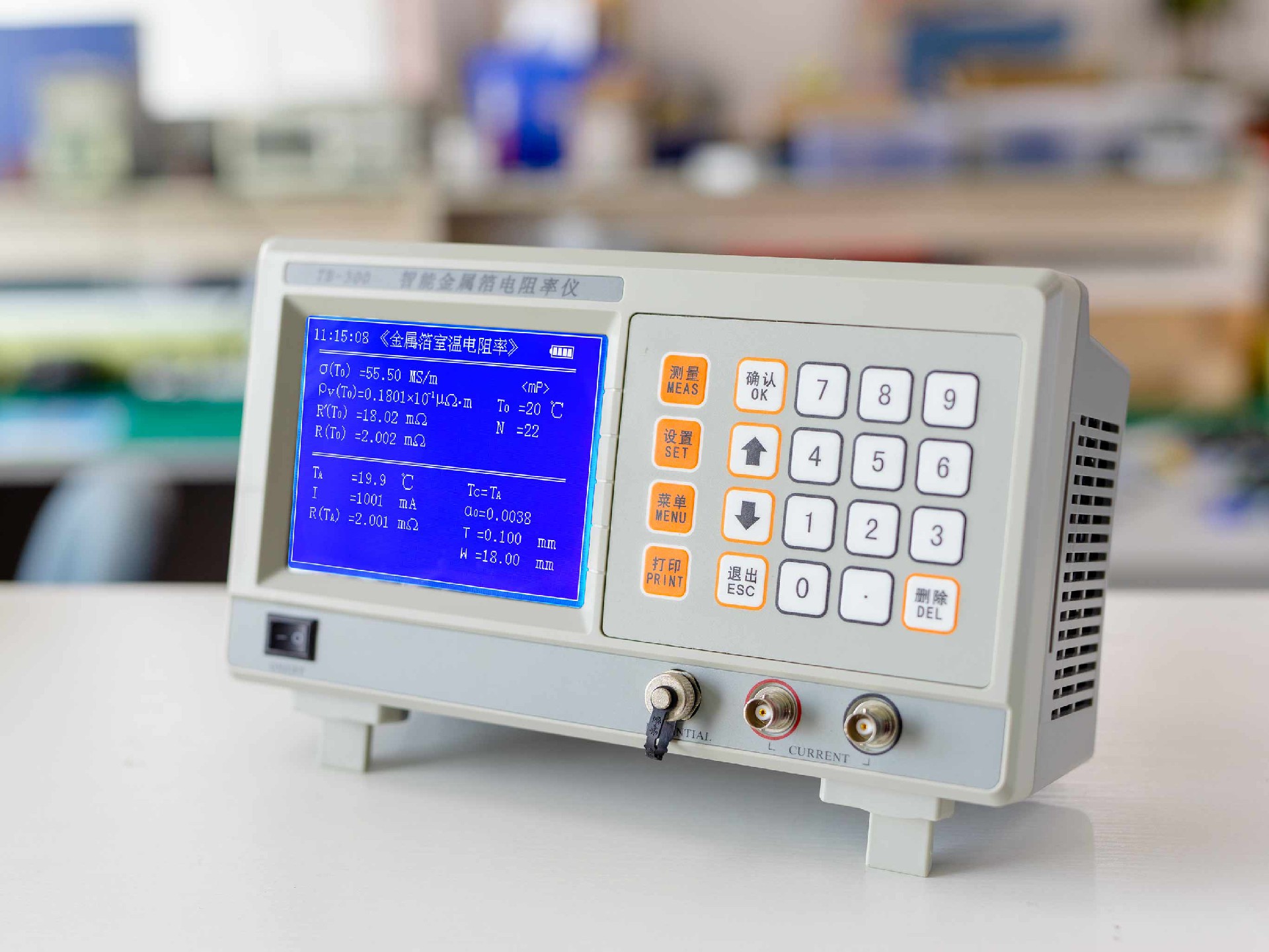 TB-300A智能金屬箔電阻率測(cè)量?jī)x,是我公司推出的專利產(chǎn)品,國(guó)內(nèi)外唯一能便攜全自動(dòng)測(cè)量金屬箔、金屬薄帶的電阻率、電導(dǎo)率等參數(shù)高性能檢測(cè)儀器。應(yīng)用電流–電壓降四端子測(cè)量法、先進(jìn)的電子技術(shù)、單片機(jī)技術(shù)及自動(dòng)檢測(cè)技術(shù)設(shè)計(jì)的高新產(chǎn)品。其性能完全符合GB/T22638.6-2016中的相關(guān)技術(shù)要求。廣泛應(yīng)用于金屬箔、金屬薄帶、電池極耳等新能源領(lǐng)域及電力電工、電機(jī)電器、高等院校、科研單位等行業(yè)。